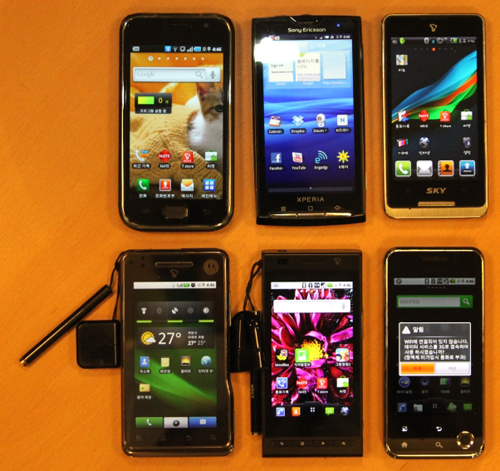 8월 11일 현재 국내 출시된 안드로이드 OS 탑재 스마트폰은 모두 14종에 이른다. 제조업체별로는 삼성전자 2종, LG전자?스카이?모토로라 각 3종, HTC?소니에릭슨?구글이 각 1종씩이다.