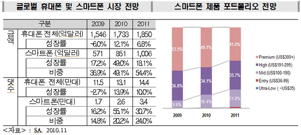 또한, 스마트폰의 대중화, 업체 간 가격 경쟁 심화, 신흥 시장의 비중 증가 등으로 중저가 스마트폰 등 제품 포트폴리오가 다양화될 전망이다.