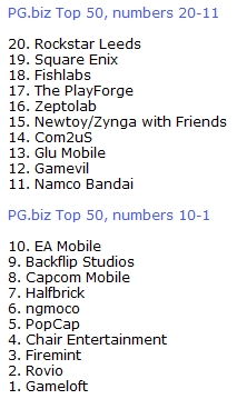 최근 영국의 세계적인 모바일 게임 웹진 ‘포켓게이머(Pocket Gamer)’는 2011년 최고의 모바일 게임 개발사 톱 50(Top 50 Developer 2011)을 발표하며 국내 게임빌과 컴투스를 각각 12위, 14위로 선정했다.