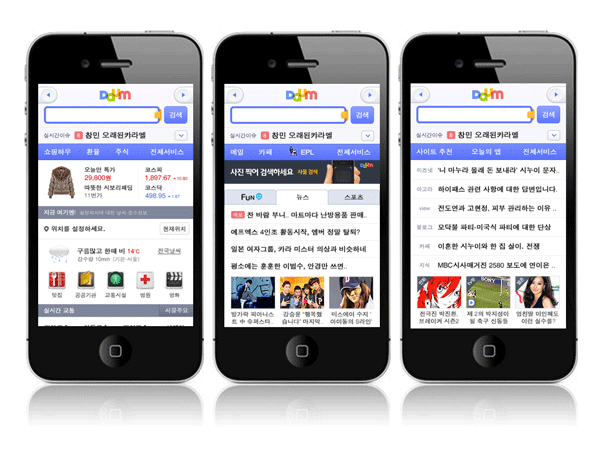 다음은 6일, 좌우 무한 플리킹과 장소검색 강화, 콘텐츠 중심의 첫화면 구성 등 모바일 이용자들의 다양한 요구를 반영해 모바일웹(m.daum.net)을 업그레이드 했다고 밝혔다.