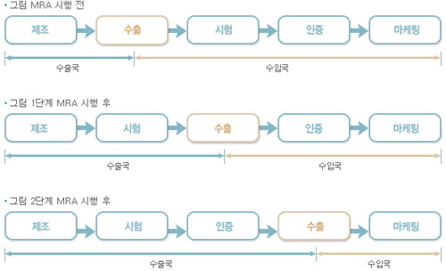 MRA(Mutual Recognition Agreement, 상호인정협정)는 물품교역 시 협정상대국의 적합성평가결과(1단계: 시험성적서 또는 2단계: 인증서)를 자국의 결과와 동등하게 인정하는 협정이다.