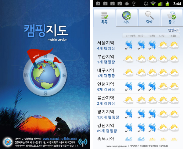 전국 캠핑장 정보를 한눈에 알아볼 수 있는 캠핑지도 애플리케이션.