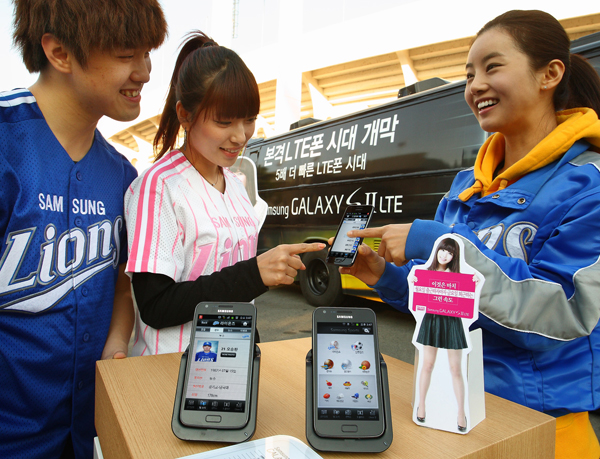 삼성전자는 한국시리즈가 열리는 야구 경기장 내 갤럭시 SII LTE, 갤럭시탭10.1, 삼성 스마트TV 제품들을 직접 경험해 볼 수 있는 체험 버스를 운영해 야구팬들에게 색다른 즐거움을 선사하고 있다고 27일 밝혔다.