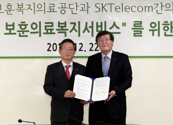 SK텔레콤과 한국보훈복지의료공단은 박인식 기업사업부문장과 이종정 이사장이 참석한 가운데 서울 서초구 한국보훈복지의료공단 본사에서 ‘미래지향적인 보훈복지 의료서비스를 위한 협약식’을 갖고 기존 치료 중심에서 예방 중심으로 개선에 나설 계획이라고 22일 밝혔다.