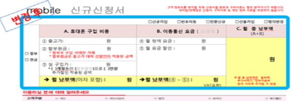 한편, 가입신청서 개선과 별도로 오는 6월 중으로 현행 이동전화 요금 고지서에 사업자마다 다르게 표기돼 있는 ‘휴대폰 할부금’ 기재 방식도 통일, 기존의 어렵고 복잡한 요금고지서를 통일된 용어로 사용토록 할 계획이다.